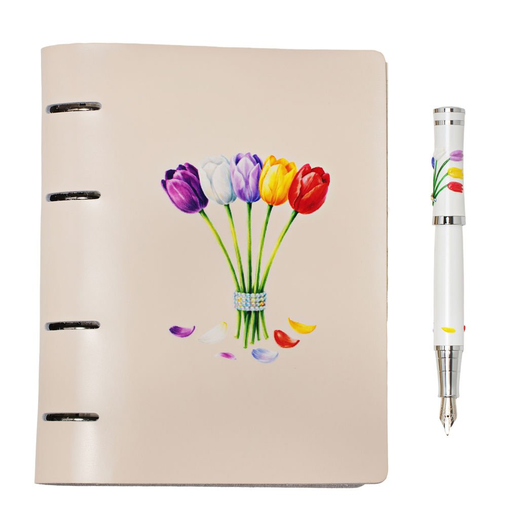 Agenda are copertă din piele naturală şi modelul de pe coperă este pictat manual cu vopsea specială, stiloul este lucrat manual.