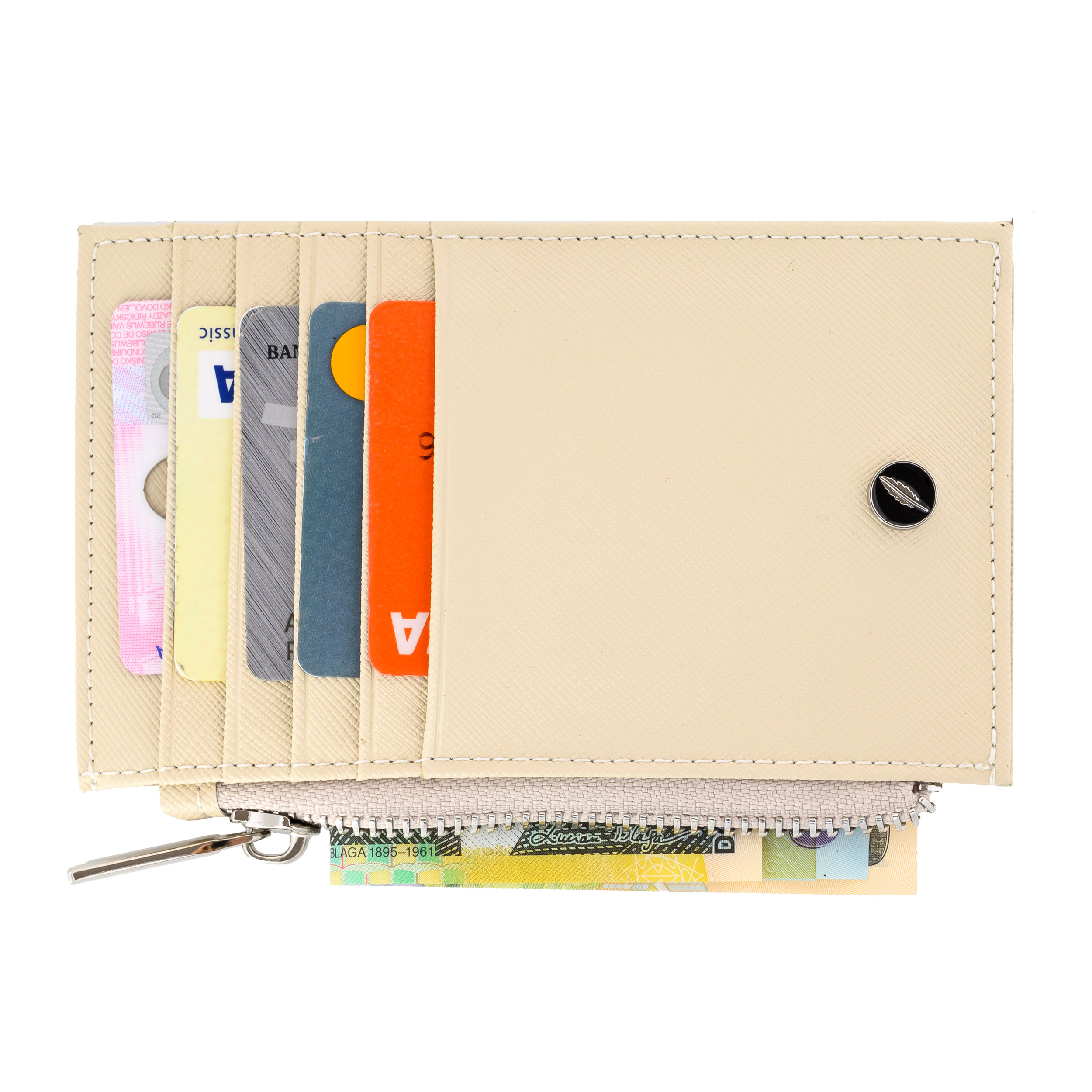 Practic şi elegant. Port-cardul Roxi Ivory Zipper , din piele naturala texturata, este cel mai potrivit accesoriu pentru principalele documente, carduri şi bani, fiind în acelaşi timp compact şi elegant.