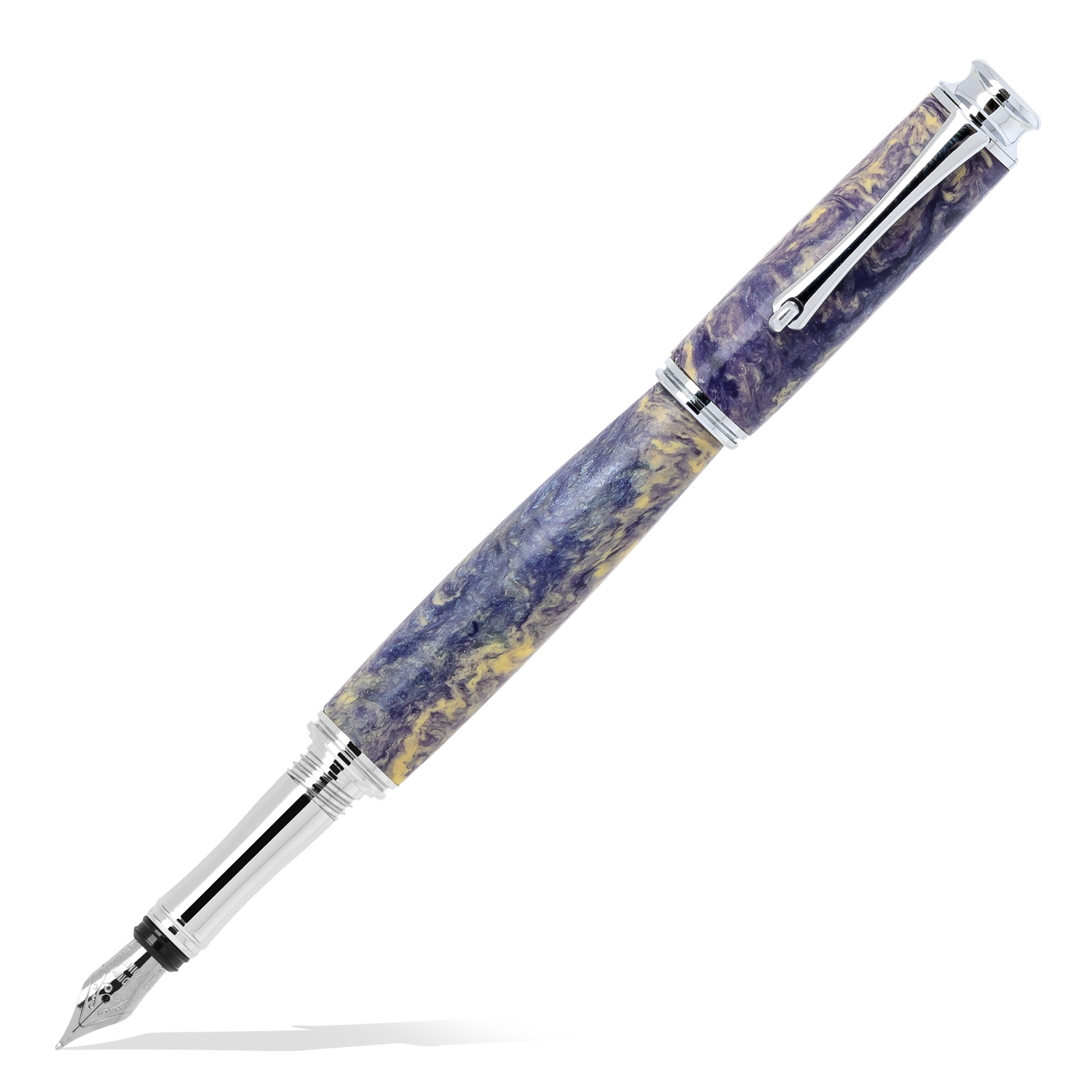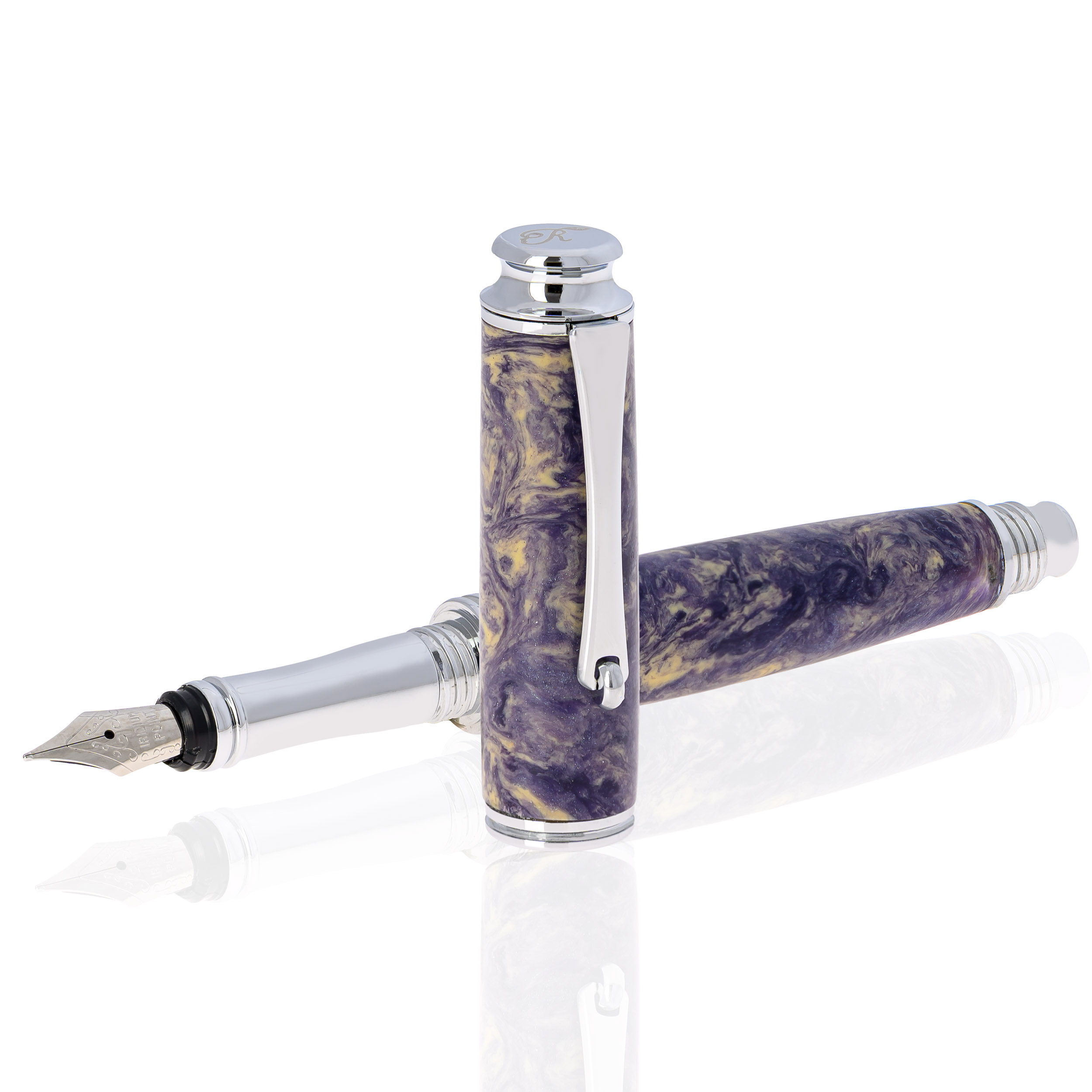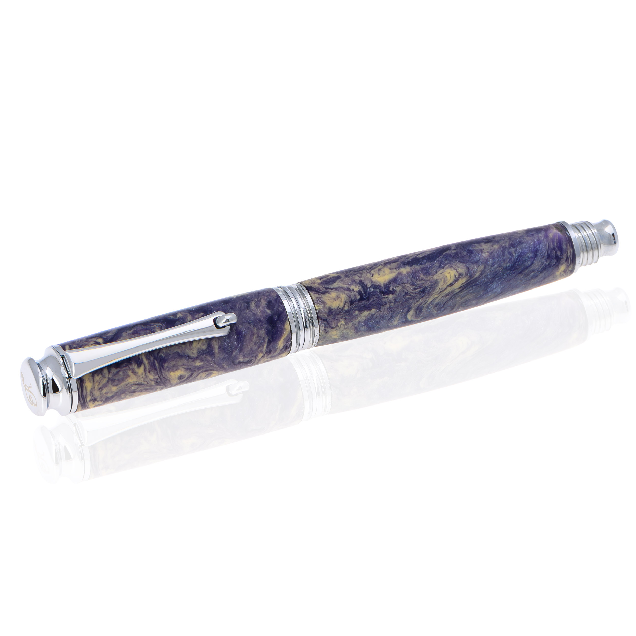 „Storm” emană eleganță și mister. Corpul din rășină în nuanțe de mov închis cu reflexe violet, evocând o furtună amenințătoare, se îmbină armonios cu clemele argintii, transformând fiecare gest de scris într-un moment plin de forță, dramatism și rafinament.